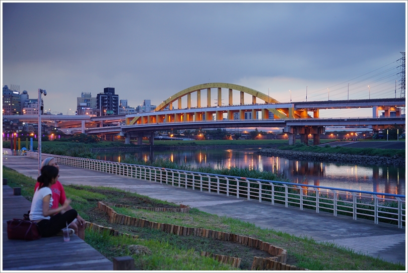 ▼吃飽喝足也可以到一旁的彩虹橋沿岸走走休息一下~這裡不僅吸引超多民眾前來慢跑及騎乘自行車,坐在河畔休憩也別有一番風味!隨著日落色溫的變化越來越明顯,感覺既悠閒又舒服~