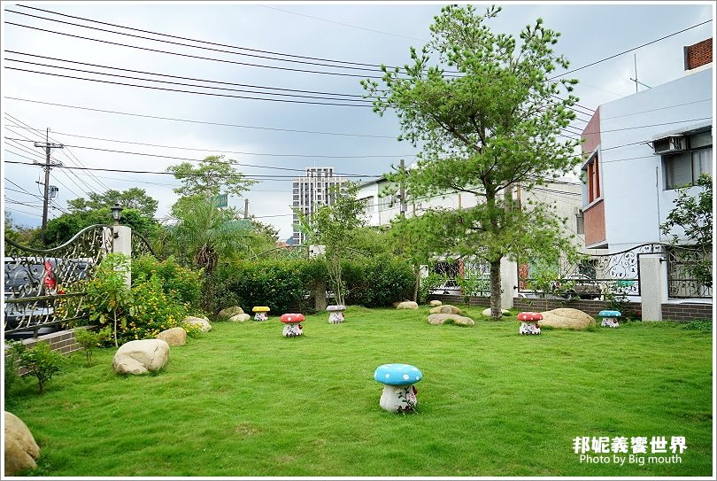 ▼大大的草皮上頭還有可愛的蘑菇椅,玩累了還可以休息一下~不管是大朋友、小朋友還是寵物來到這裡都能玩得相當盡興!
