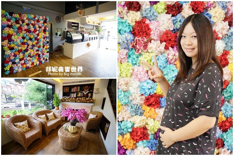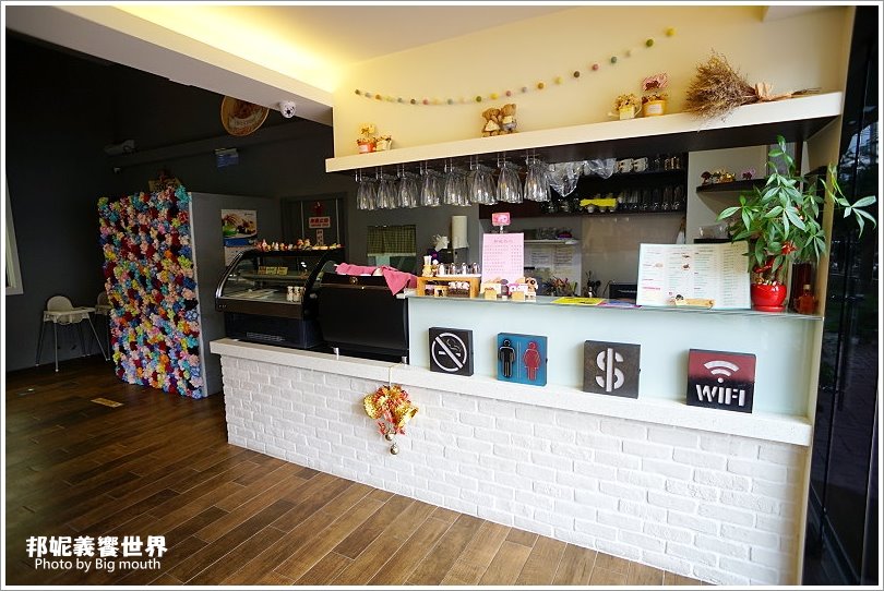 ▼左側則是一個充滿濃濃歐風的休憩空間,竟然還有設計壁爐~讓人有種一秒出國的感覺!櫃台旁就是一面繽紛的花牆,口咩也在這裡拍了一系列的孕婦照(笑)!不管是大、小朋友或是寵物來花牆前拍照,怎麼拍都超美的啦!