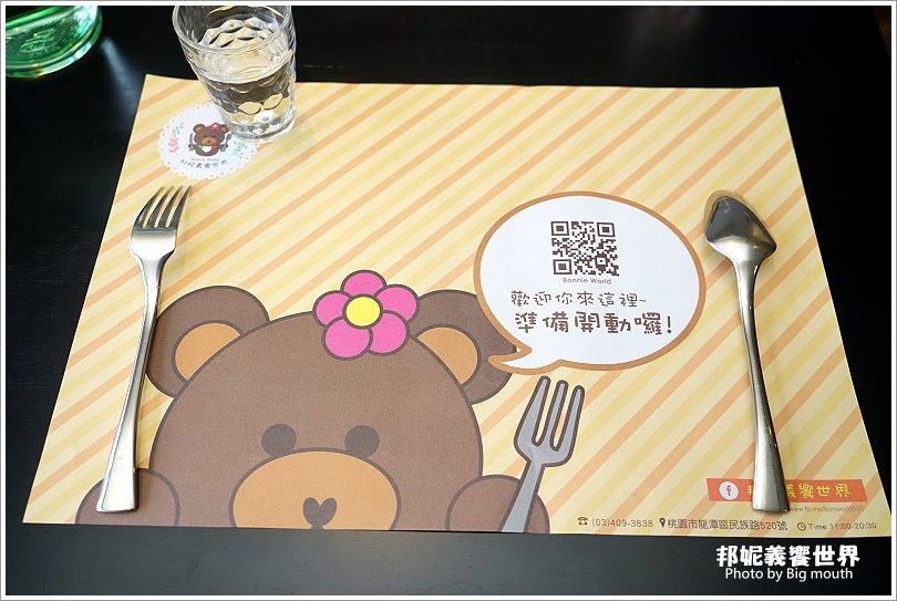 ▼桌上還放有超可愛的餐紙及餐具,上頭有QR Code,有興趣的朋友用餐前都可以先掃描了解一下!坐定位後服務人員就會送水過來囉~