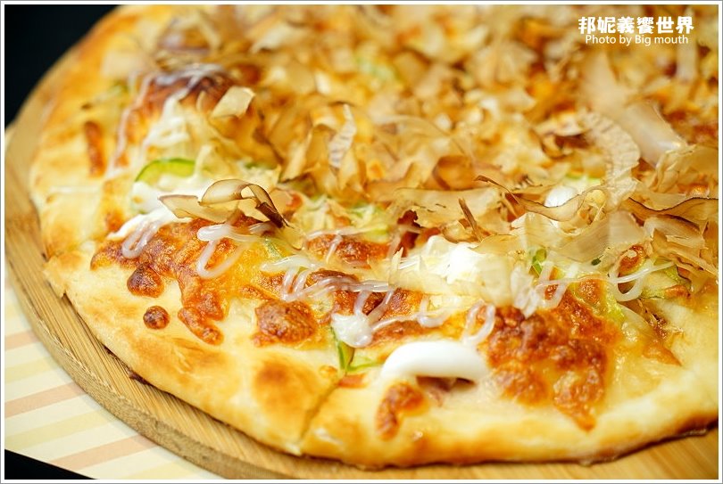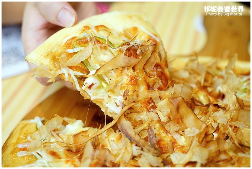 ▼PIZZA麵皮酥脆中帶點香Q口感,不是屬於薄脆但也不會過於厚實,算是帶有點嚼勁的口感,搭配海鮮配料吃起來香甜又開胃,尤其是柴魚片與美乃滋更增添不少甜美口感,吃起來很過癮!