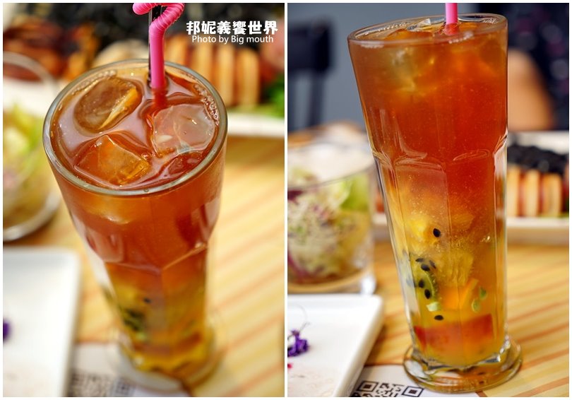 ▼熱帶森林水果茶(原價180元/冰,套餐升級需加價100元),裡頭的水果配料可是店家自行熬煮,喝起來不僅有淡雅的茶香,還有各種新鮮水果的香甜美味,搭配在一起香濃美味,清爽順口!