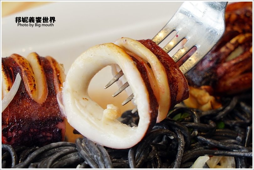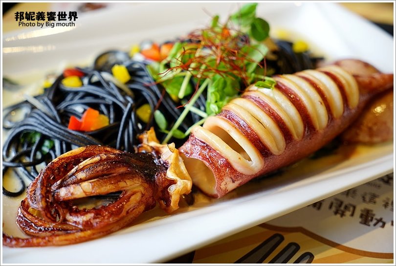 ▼不僅有黑到發亮的墨魚麵,搭配超大尾的墨魚看了真的都要飽一半了XD