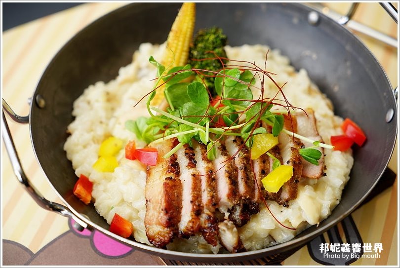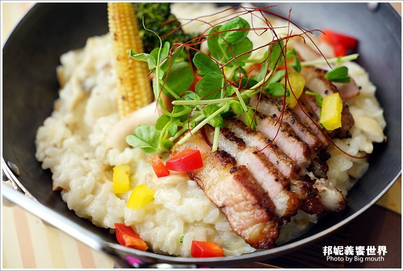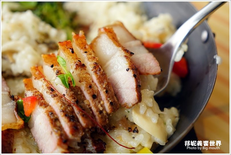 ▼不過相較之下大口更喜歡搭配燉飯享用,一口吃下不僅能吃到醇厚的奶香,還有福菜的香脆,加入鹹豬肉後口感變得鹹香多元,也更有嚼勁一些!