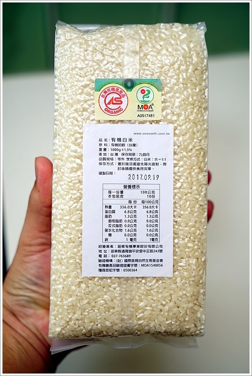 ▼背面也貼有品名、產量、保存方式、碾製日期、營養標示與製造商資訊!此外也有CAS、MOA有機認證標章及有機農產品字號,讓人享用起來更放心!