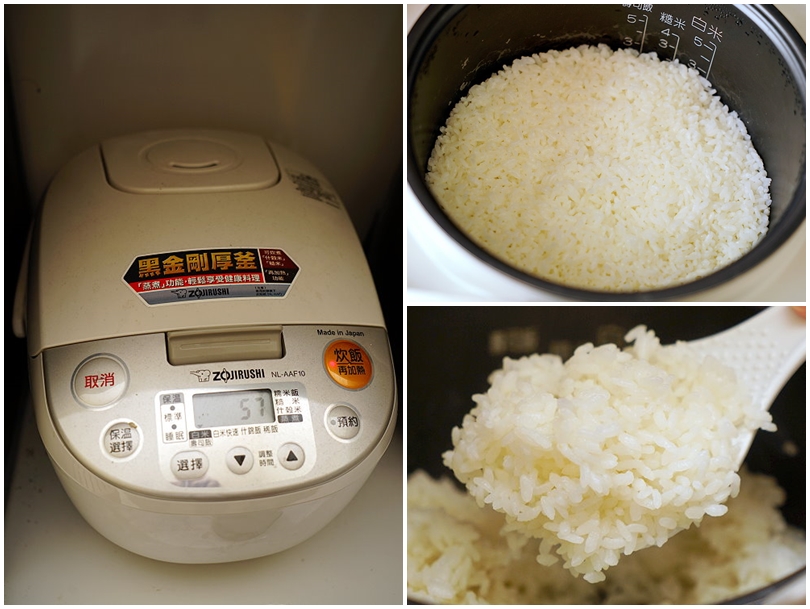 ▼因為我們是採用日製的電子鍋,所以米與水的比例採用1:1即可!煮好之後記得先悶個五分鐘,之後打開攪拌一下讓水分蒸發,最後再悶個五分鐘就大功告成啦!使用傳統電鍋的朋友也沒問題,先在外鍋加水煮第一次,跳起來後悶20分鐘用飯匙上下翻動後,外鍋再加水煮第二次,香Q好吃的米飯就完成啦!