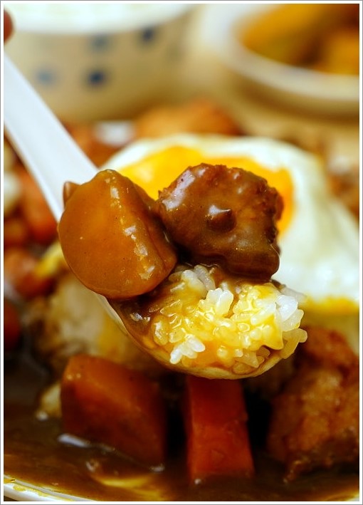 ▼除了搭配炸雞唐揚、地瓜、紅蘿蔔之外,再加上半熟蛋吃起來更是誘人!鮮嫩的蛋液搭配日式咖哩醬與白米,吃起來除了咖哩香氣之外更增添蛋香與滑順口感,加上白米的香甜Q彈與黏性,讓這碗咖哩飯變得更厲害,不僅美味更讓人重拾家的味道,真是太感人了!