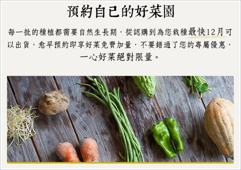▼除了有機米之外,也有有機蔬菜可供下訂,下訂後要多等個2~3個月的栽種期,也就是助養這塊菜園,讓這塊菜園是真心為你而栽種,也更能減少工廠蓋在農地上的機會,讓土地有更多機會可以轉型成健康的自然農法!健康的美味,大口認為是值得等待的~而且還是限量的好菜唷!