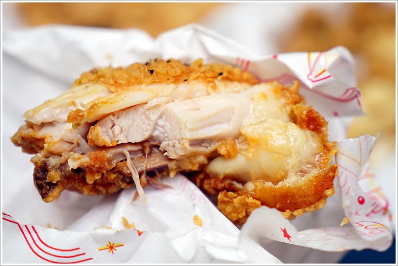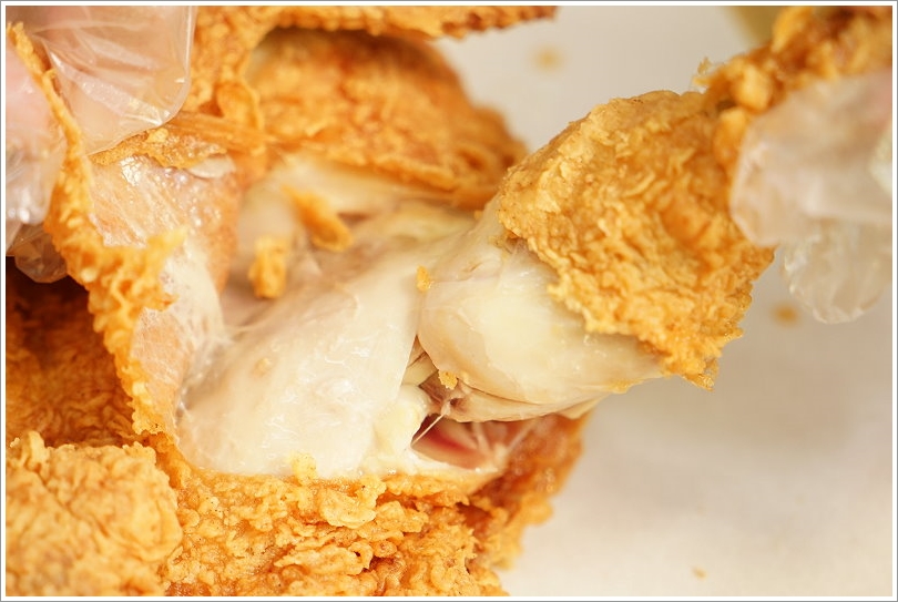 ▼一口咬下,外皮非常酥脆,裡頭肉質香嫩多汁,口感帶點微微奶香與醃料香味,味道不會過重過膩,加上已經去骨吃起來超爽快!