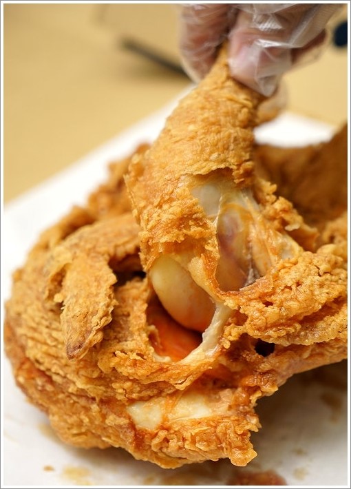 ▼打開一看,整個是完整的炸全雞耶!店家很貼心還特別將雞頭處理掉,不過還留有小巧可愛的雞屁股(羞)~
