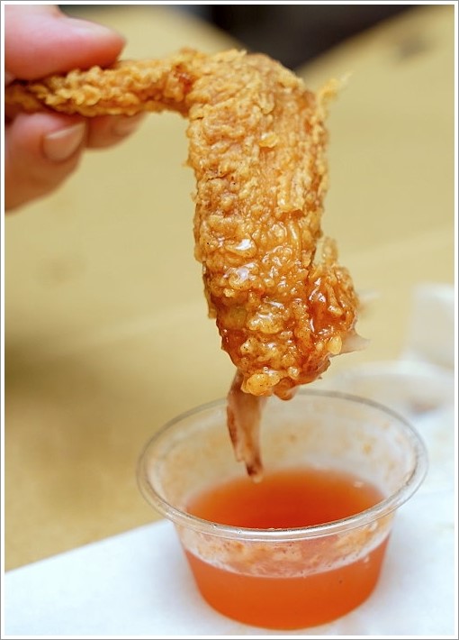 ▼脆皮雞翅(一支30元、二支55元、三支80元),個頭還不小,搭配酥脆的麵衣更顯肉質的柔軟嫩口!