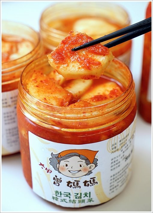 ▼每一罐的瓶身都有貼上「大甲曾媽媽」的專屬LOGO貼紙,搭配韓文加上中文字樣,更充滿韓國泡菜的FU啦!