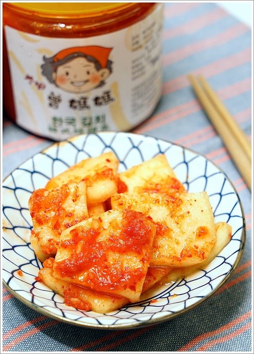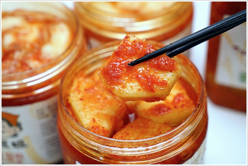 ▼「結菜頭」也就是所謂的「大頭菜」、「蕪菁」,也是台灣人常見的開胃小菜食材之一,這款韓式結頭菜是小辣口味,看起來紅通通的但吃起來不會這麼辣口!