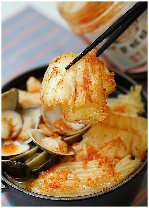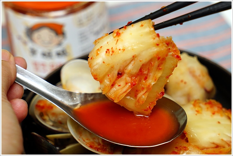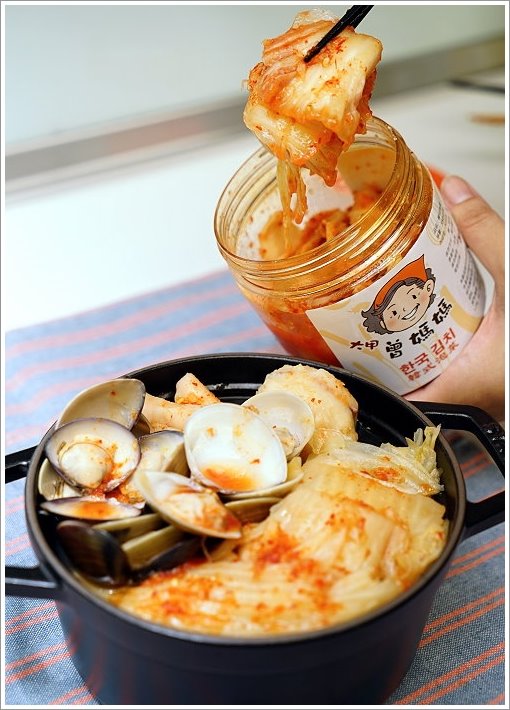 ▼而這款中辣的火鍋泡菜最適合拿來煮泡菜火鍋啦!而且在家簡單煮就很好吃,食材還可以隨心所欲的放,吃起來一整個就是爽快啊!大口建議大家可以一開始先放一些泡菜跟醬汁下去跟高麗菜一起烹煮,之後再依序加入火鍋料、蛤蜊即可!