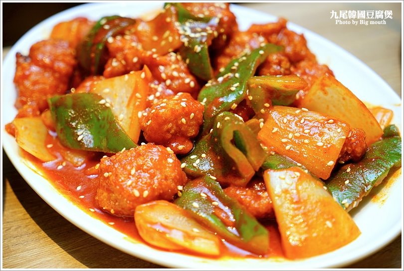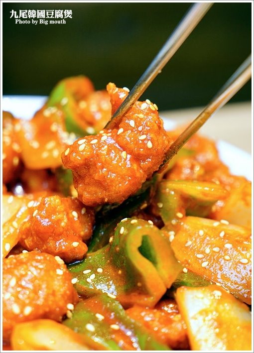 ▼韓國炸雞,這道也是相當經典的一款!醃漬過的雞肉裹粉後下去香炸而成,再搭配韓式辣醬跟洋蔥、青椒等配料一起拌炒,紅通通的模樣真是讓人口水直流啊!