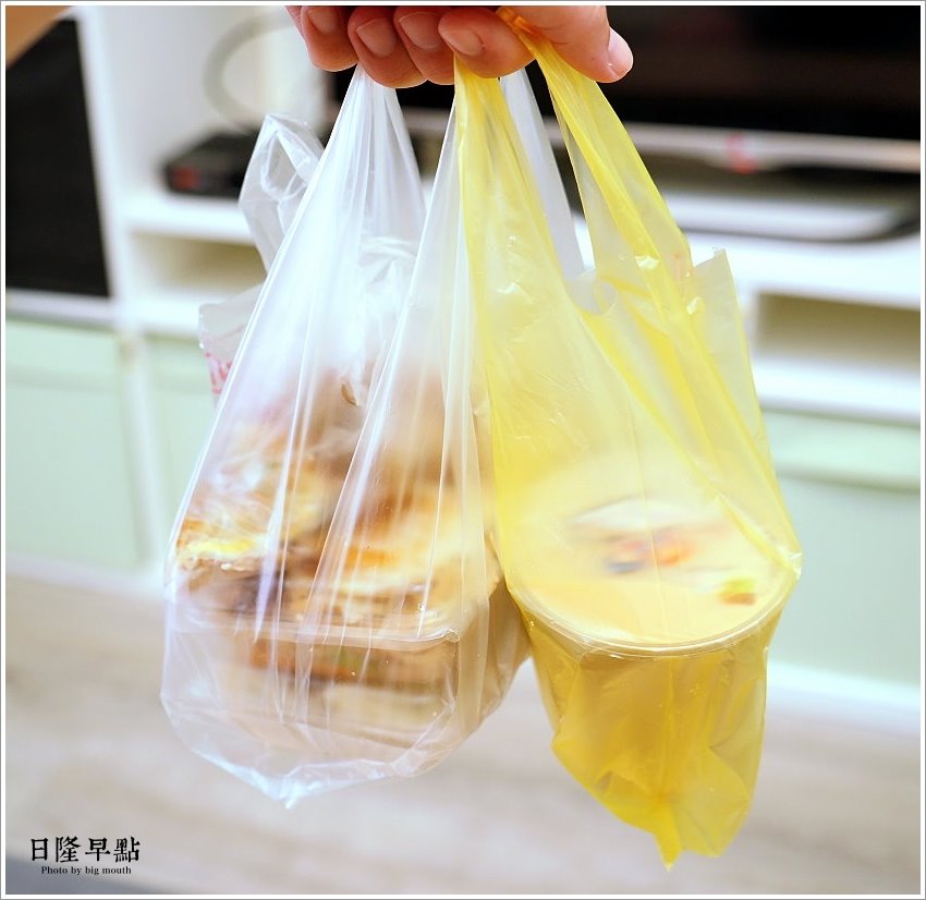▼因為沒有內用區,所以只能外帶回家享用啦!蛋餅是用塑膠袋盛裝,炒飯及湯包則是放在塑膠盒裡頭,感覺比較沒這麼環保,也建議大家方便的話可以自帶餐具唷!