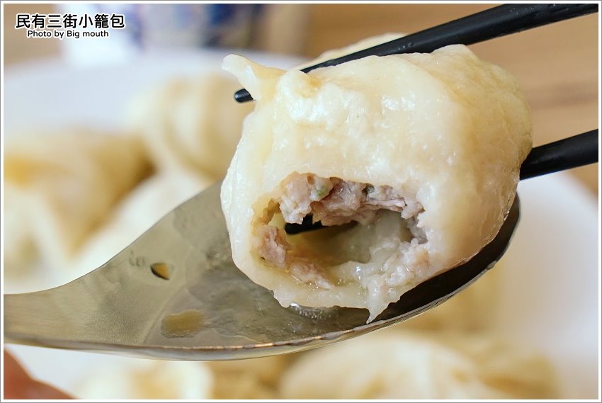 ▼一口咬開,外皮薄Q,裡頭的肉餡非常飽滿,鮮嫩的絞肉伴隨著青蔥、薑味,不僅多了股清甜的滋味,薑味也適時解膩不少,搭配起來意外的合拍!