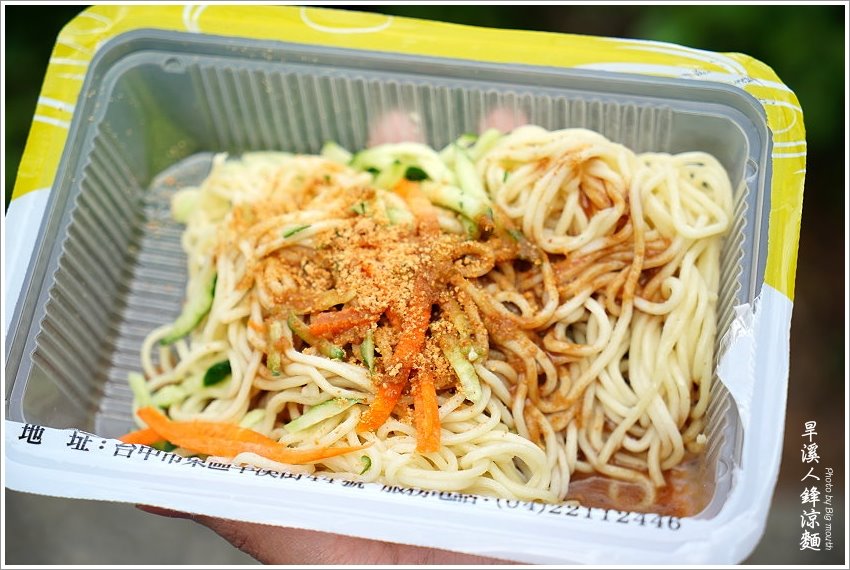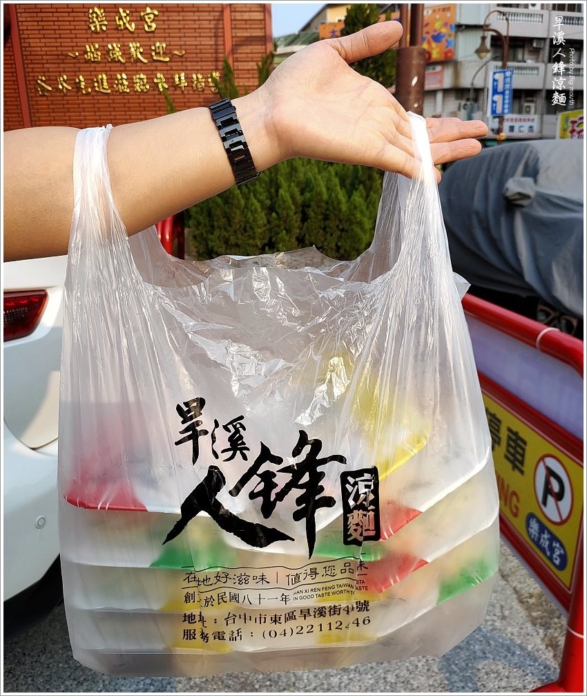 ▼「人鋒涼麵」就位於旱溪街上,就在廟邊附近,走過來沒多久就能看到顯眼的招牌!這裡只能外帶無法內用,很多朋友都是買回家享用或是路邊就吃了起來!