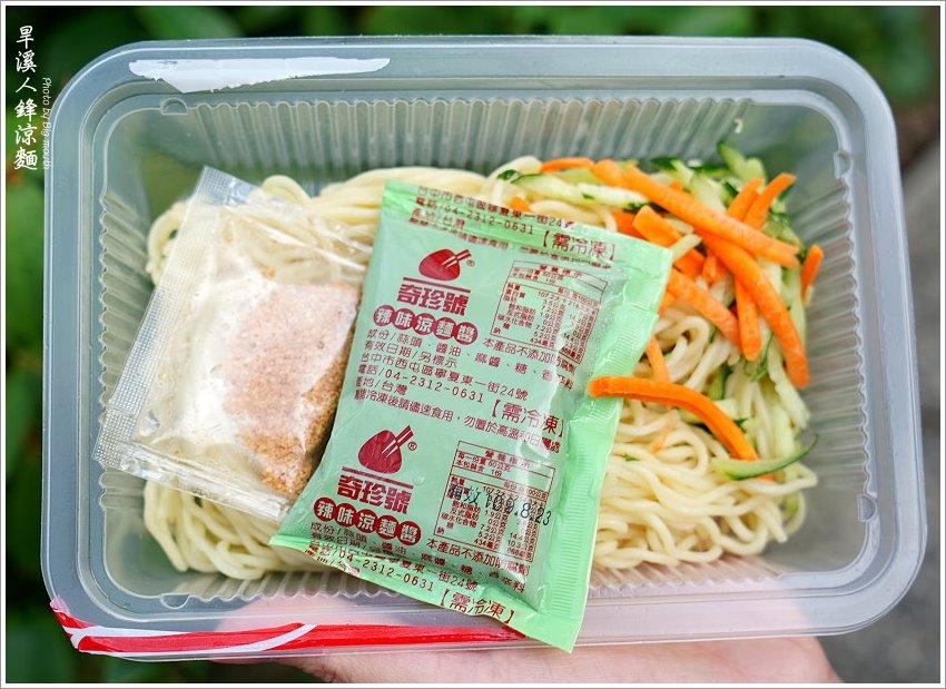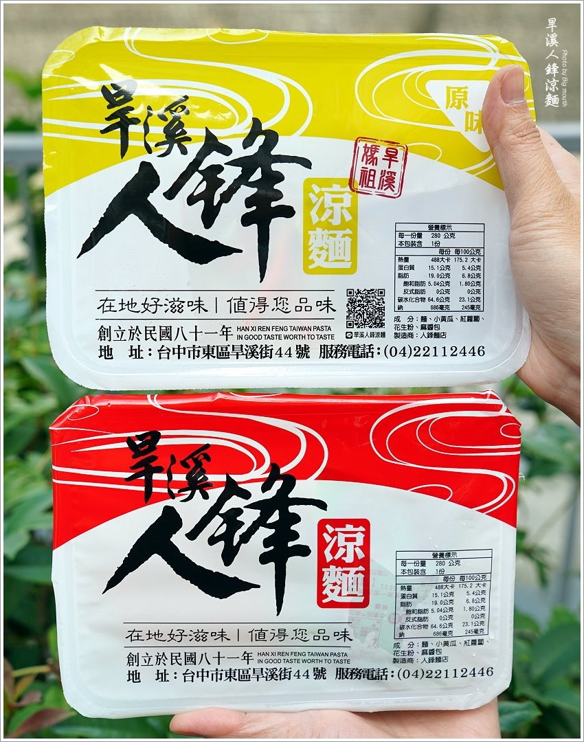 夏天快到了,又是吃涼麵的好時機!位於台中樂成宮旁的「旱溪人鋒涼麵」,創立至今已經將近30年的歷史,是在地人從小吃到大的傳統美味;他們家的涼麵採用的是封膜的外帶盒裝,放置冷藏可以保存四天,麵條還能維持一樣的Q度口感,很適合多買一些放在冰箱慢慢享用!口味一共有原味、辣味、素食三種,另外還有提供辣粉,吃起來清涼滑順又香Q,還帶有蒜香、花生與麻醬香氣,加上辣粉更夠味好吃;辣味則是單吃就很棒,帶點咪咪阿辣更是開胃啊!