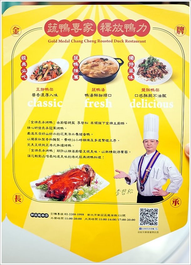 FB粉絲團:https://www.facebook.com/GoldMedalChangChengRoastDuck/