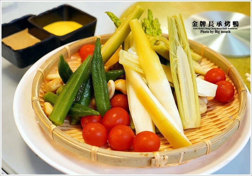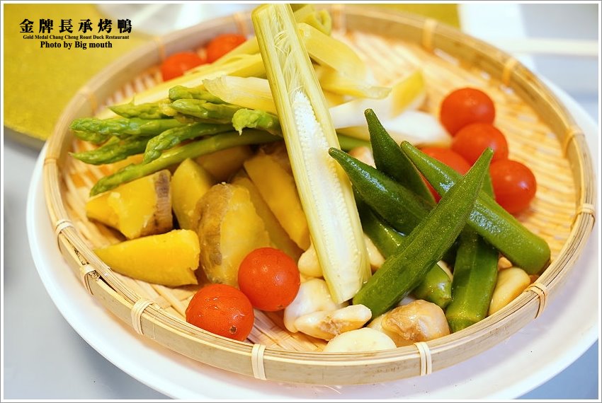 ▼裡頭有秋葵、玉米筍、番茄、筊白筍、蘆筍、菱角、地瓜等多種蔬果,吃起來營養均衡豐富,搭配烤鴨享用很是清爽!