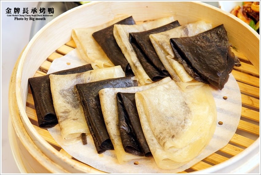 ▼餅皮輕薄香Q,黑芝麻餅皮還帶點微微芝麻香氣(隨季節不定期更換菜單),搭配片皮鴨及多種配料,更增添清爽與多層次口感,加在一起好涮嘴!