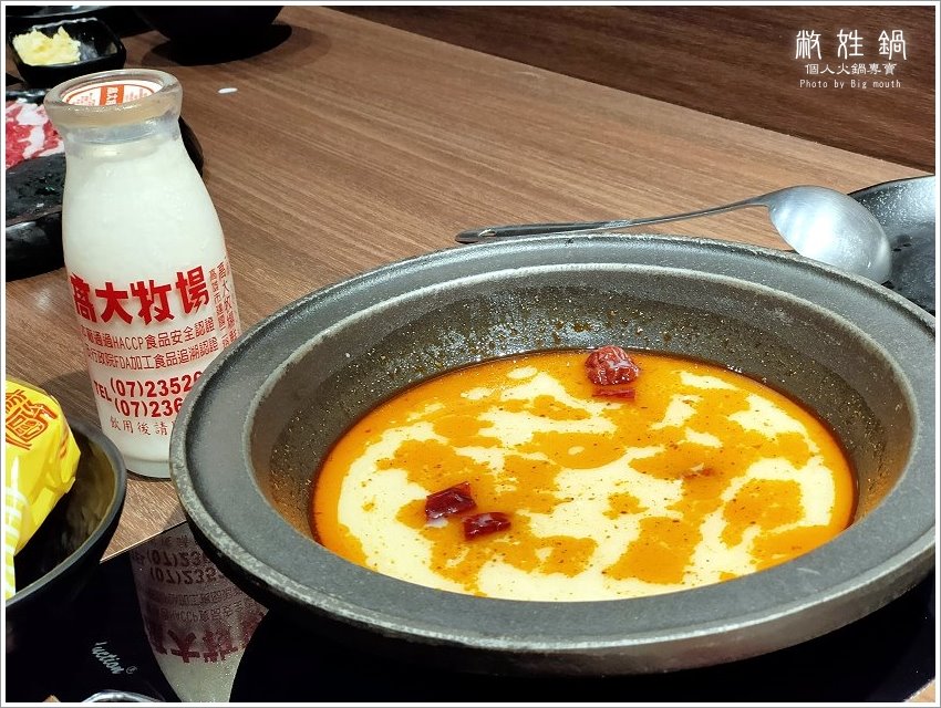 ▼麻辣牛奶湯底,麻辣跟牛奶兩種湯頭我們本來就很喜歡,加在一起吃起來香麻微辣,牛奶適時減緩不少辣度,湯頭變得溫潤又順口,搭在一起其實還滿不錯的!