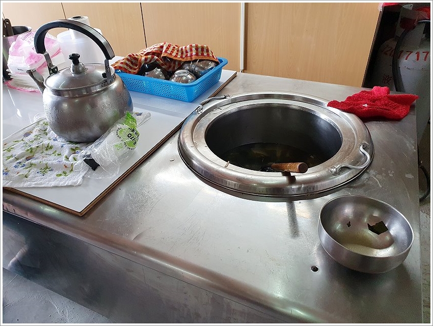 ▼現場也有提供幾個座位區,大家可以選擇要內用或外帶,不過通常外帶居多!一旁就是自助區,讓客人自行夾菜及裝湯、飲料的地方!