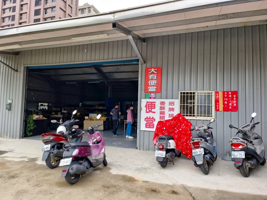 ▼在地經營20多年的「大有便當」之前搬遷到大有路靠近榮民醫院的位置,現在又搬到三元街上、全國食材廣場後門的斜對面,客人也一路跟著遷徙過來;越接近中午用餐時間,門口的機車就會越來越多,人潮還是滿滿啊!