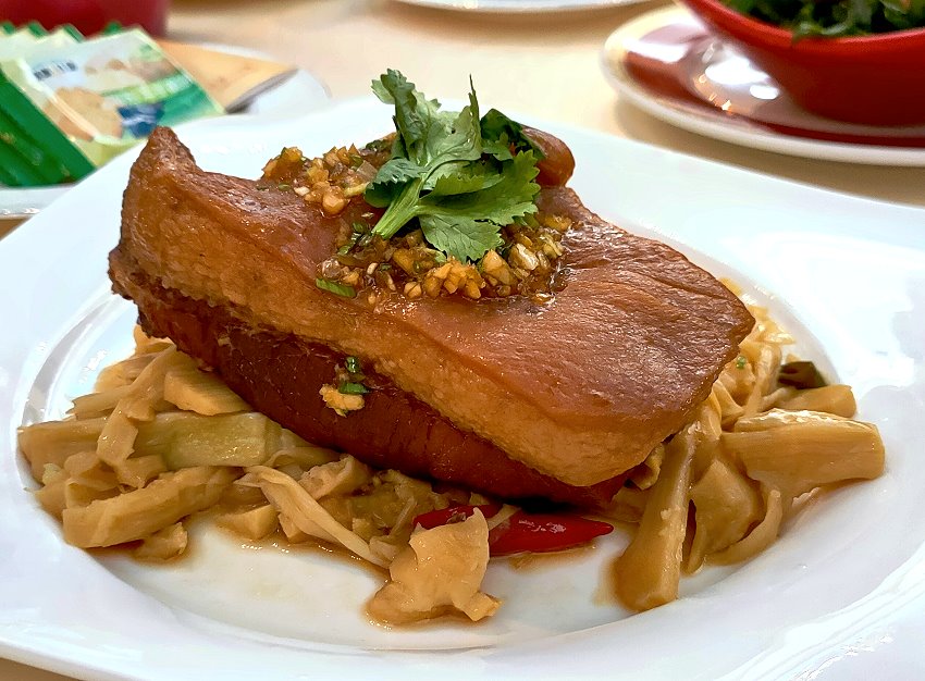 ▼大肉,也就是類似東坡肉,一旁配有筍絲,肥肉部位肥嫩又帶有Q彈的嚼感,可惜瘦肉的部位還是有點乾柴,而且豬癬味略重,一旁酸香甘醇的筍絲比較對我們的胃口!是說吃完這五道前菜就已經呈現半飽的狀態啦~才剛開始就快要結束了(笑)!