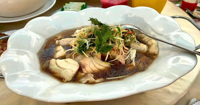 ▼龍膽石斑肉質緊實Q彈,還帶點微黏香Q的膠原蛋白,調味不會過重,吃得到魚肉的鮮味,搭配甘醇的醬料及配料提味頗為合拍!