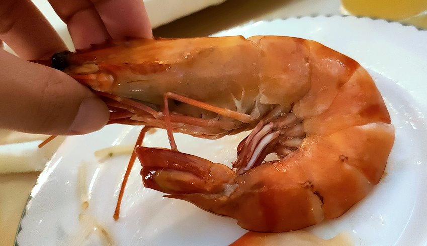 ▼看得出來有多大隻了吧~連小口愛都嘖嘖稱奇XD吃起來帶有濃郁的紹興酒香,肉質鮮美、飽滿緊實,連大人都要吃上好幾口,吃起來很有飽足感啊!