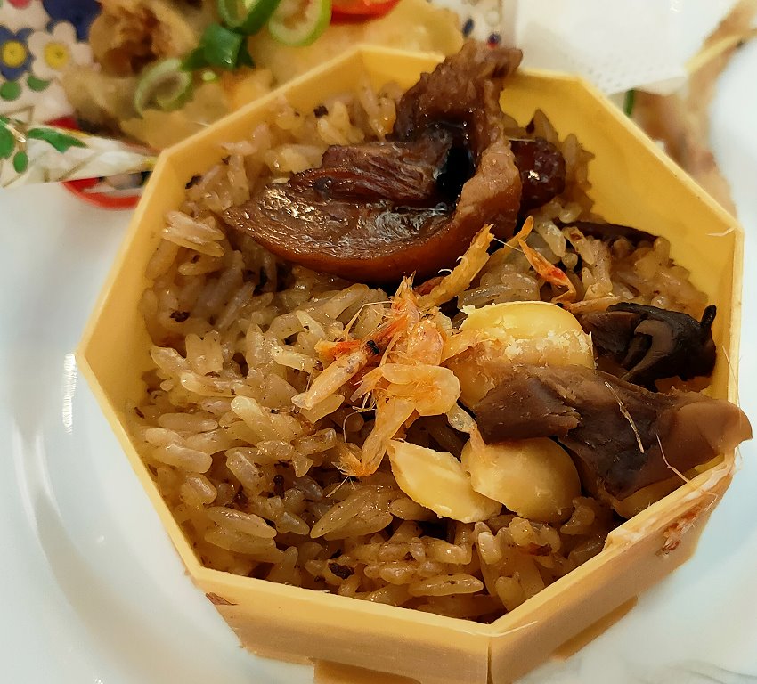 ▼油飯已經分成一小盅,上頭用彩繪的彩布覆蓋,看起來就像是藝術品般精緻美好!