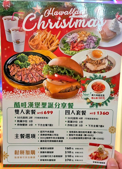 ▼最近剛好是聖誕節前夕,所以有推出聖誕分享餐,我們點的是雙人套餐,內容有50元飲料x2(可補差價更換飲料)、凱薩沙拉x1、炸物雙拼x1、主餐7選2,我們兩大一小吃起來也挺有飽足感的!