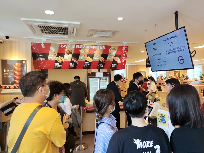 ▼當天友人是預約下午兩點,一到現場已經人潮滿滿,很多朋友都是現場抽號碼牌,建議大家可以先下載APP訂位或抽號碼牌,會方便很多唷!我們第一次吃壽司郎是在新竹巨城,也是使用APP訂位,所以逛一逛看到時間差不多就趕快過去享用啦!