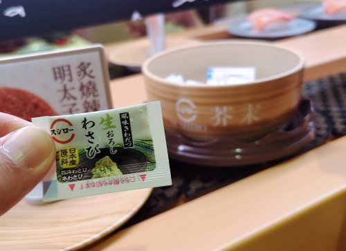▼芥末放在迴轉台上,有需要的朋友可以自行取用~不過大口都會一次拿兩包才夠用(笑)!