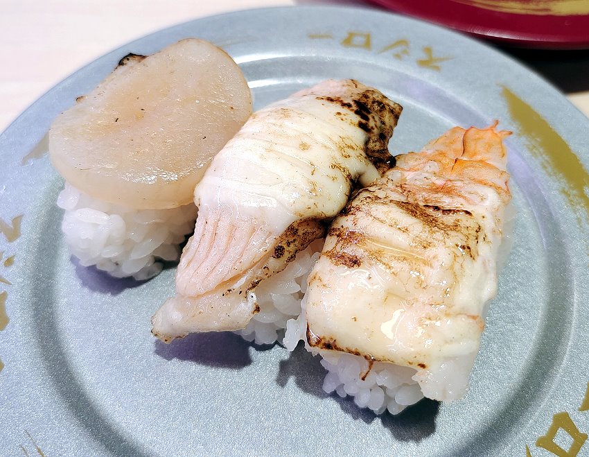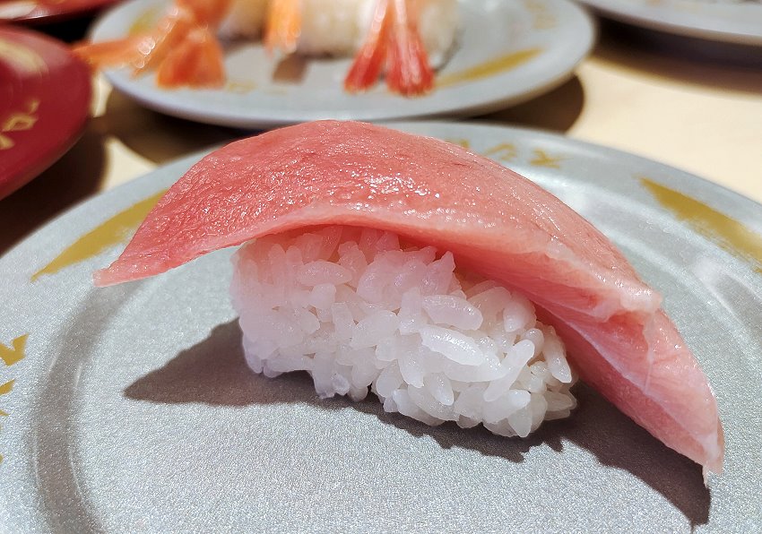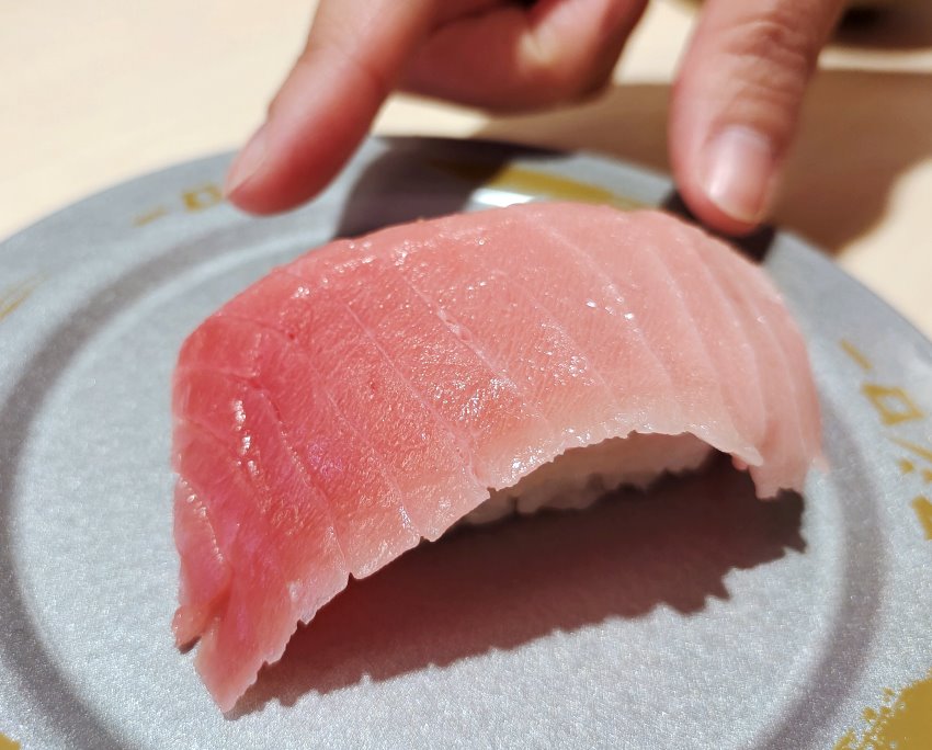 ▼吃起來肉質細嫩柔滑,還帶有油脂香氣,搭配壽司米還不錯~~難怪大家都是瘋狂的點,整個迴轉台上幾乎都是這道啊!