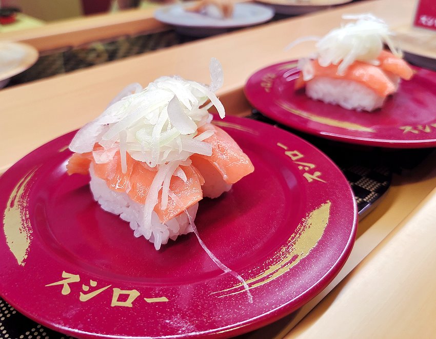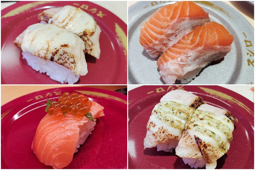 ▼因為我們是鮭魚控,當然要點一堆鮭魚來試試~~我們拿了炙燒起司鮭魚、大切生鮭魚、鮭魚親子、炙燒羅勒鮭魚,其中炙燒系列都不錯,不管是起司或是蘿勒都滿對味的!單吃鮭魚握壽司也挺過癮~~不過當天吃到的壽司米比較偏軟一點,口感就有點可惜了!