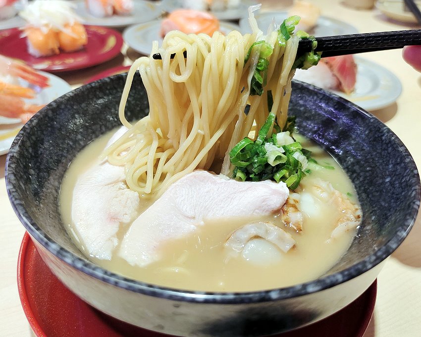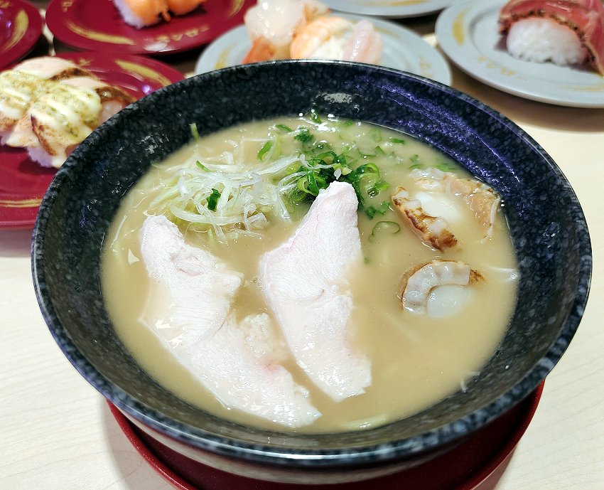 ▼干貝雞白湯拉麵,每次吃太多冷盤壽司後就會想來碗熱的,所以大口幾乎都會點上一碗拉麵試試!