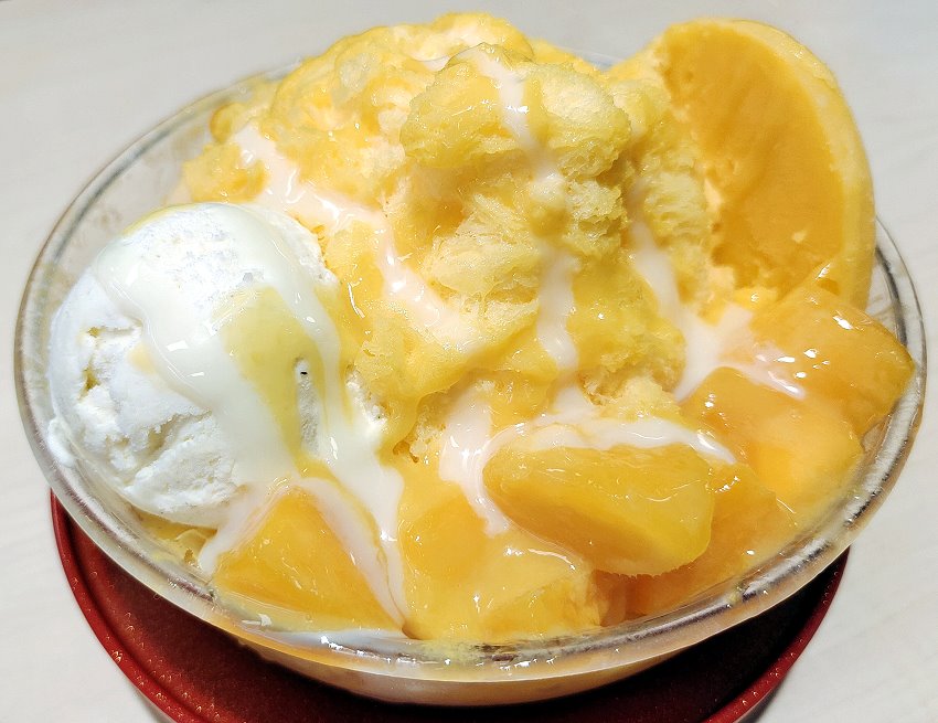 ▼芒果雪花冰,份量還不少,我們四個人分食差不多~~以芒果雪花冰為基底,上頭搭配新鮮芒果、芒果波波球、芒果雪糕、香草冰淇淋等,再淋上煉乳,吃起來香甜又清爽,整個很有夏天的感覺啊!尤其芒果波波球一口咬開還會有種小爆漿的快感,口感很特別~~小朋友應該很愛吧(笑)!