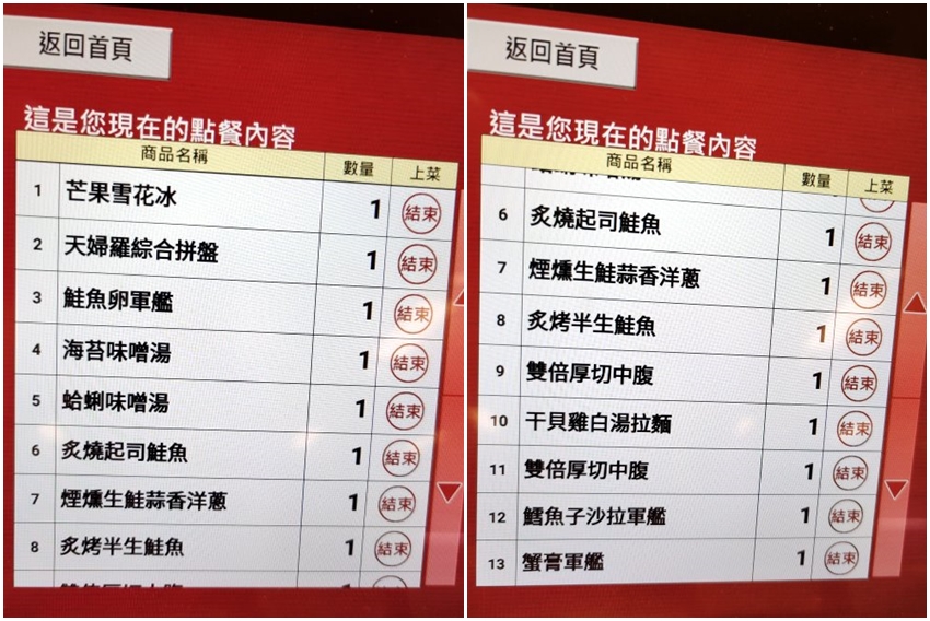 ▼螢幕上也能看到總共點了哪些餐點,結帳前也可以先確認有沒有上菜完成!