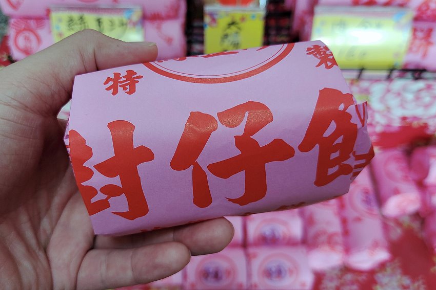 ▼這一櫃紅通通的封仔餅就是我們的重點啦!封仔餅採用傳統紅紙手工包裝,不僅喜氣,送禮也好看,算是少數還堅持用手工紅紙包裝的傳統餅店;封仔餅一共有綠豆沙、芋頭、白豆沙、紅豆沙、肉餅等五種口味,也是台東在地人說的中秋月餅,現在不用中秋節也能吃得到~~常溫可放4~15天不等(依口味不同),此外也可冷凍保存,享用前再回烤即可!