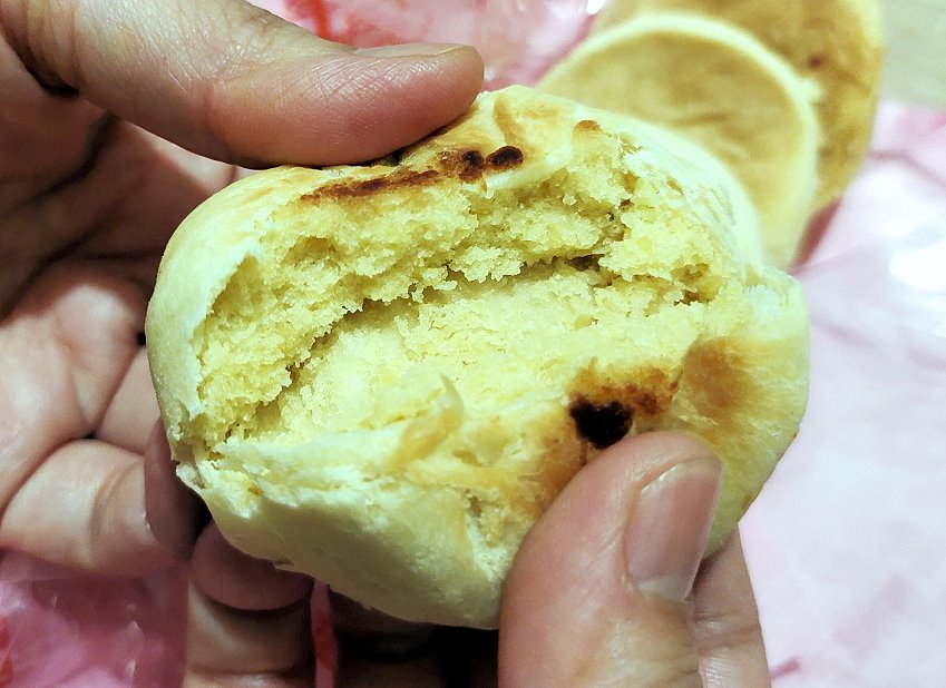 ▼首先來看綠豆沙口味,小巧渾圓、帶點微焦的外型相當討喜,個頭不會太大,吃完一個感覺也不會過飽,份量挺剛好的!