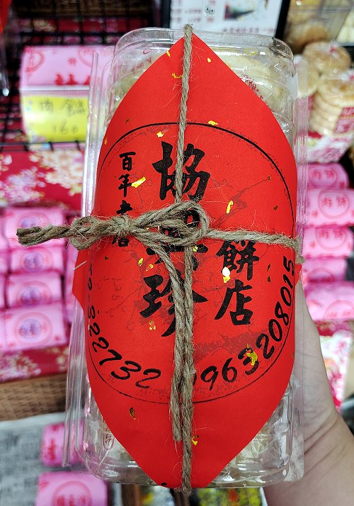 ▼看到太陽餅也忍不住拿了一盒,包裝以大紅春聯搭配草繩包裹而成,也是充滿濃濃古早味!