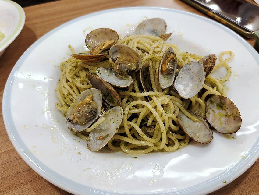 ▼奶油青醬海瓜子麵,原本對這道期望還滿高的,殊不知~~~連愛吃貝殼類的小口愛都不愛(淚)!
