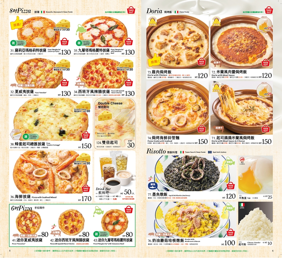 ▼薩莉亞菜單,平日中午有推出超值午餐,從早上11點到下午5點,只要110~160元就能吃得飽,也太平價啦!