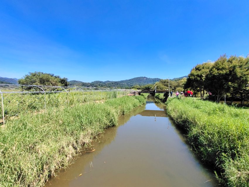 ▼金針花園區在最後方,所以要稍微走一段路,雖然時值秋天但天氣仍然相當炎熱,大家可以戴帽子或洋傘以防中暑!沿路也有一些膠筏、水道及各種植物可供欣賞玩耍,所以也可以增長一些知識!