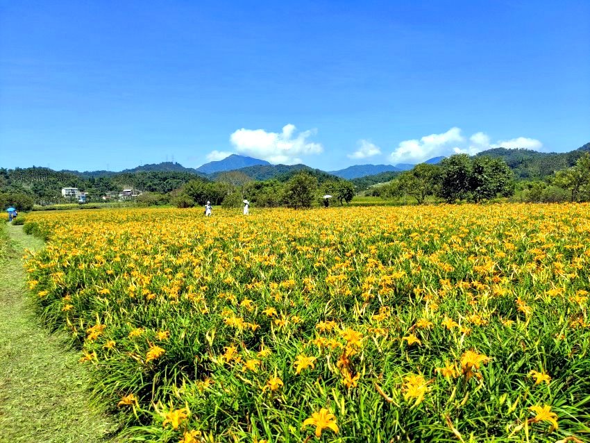 ▼整片金針花海真的超級壯觀,而且四周圍都有小徑可供拍照,拍起來就會像在花海中間啦~~