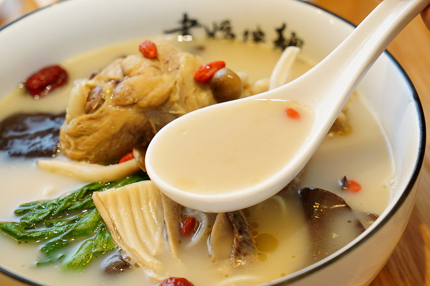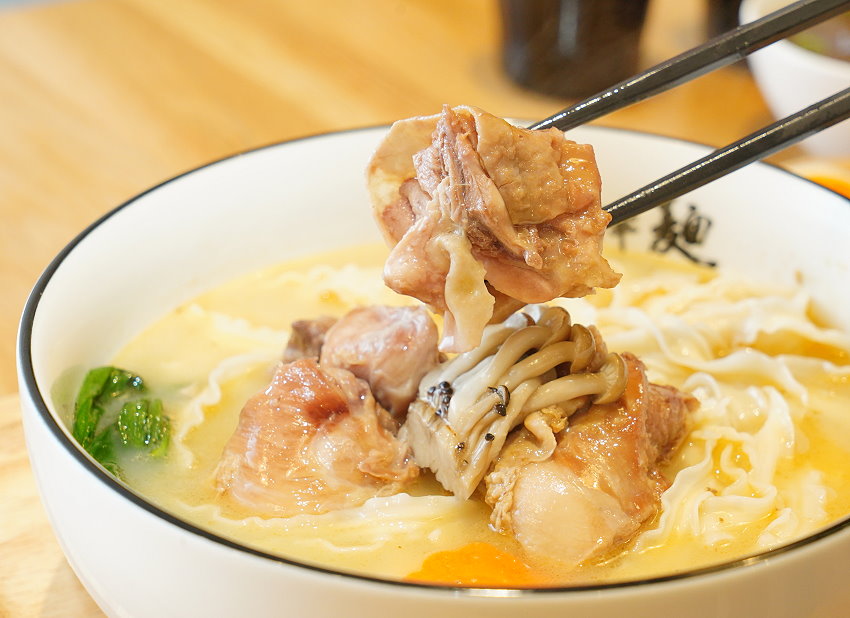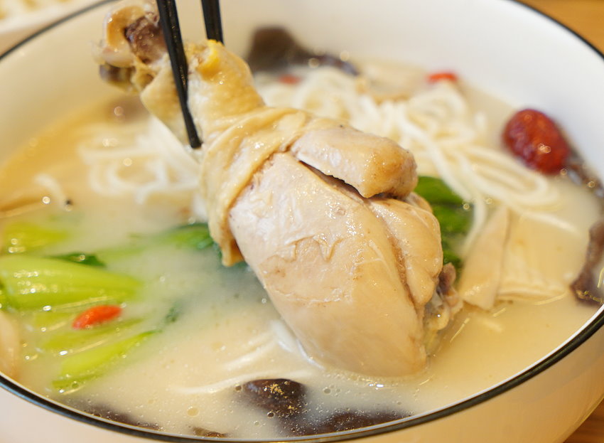 ▼雞肉塊給得大器又厚實,吸附滿滿湯頭精華後,吃起來甘甜飽滿,整個很有飽足感!