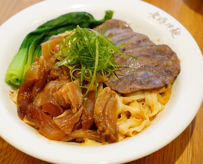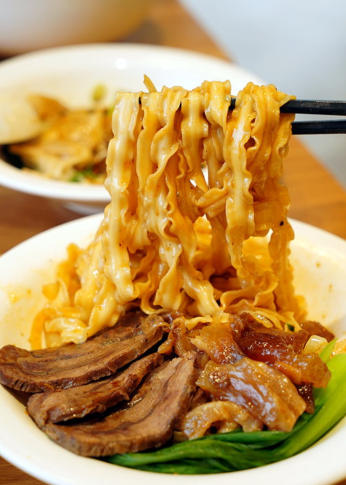 ▼牛肉拌麵最適合搭配波浪狀的關廟刀削麵,吸附滿滿由花椒、秘製麻辣醬調和而成的醬料,吃起來Q彈又有嚼勁,香麻微辣的味蕾很是涮嘴,連平常只吃小辣的我們都吃得意猶未盡,這道很可以啊!